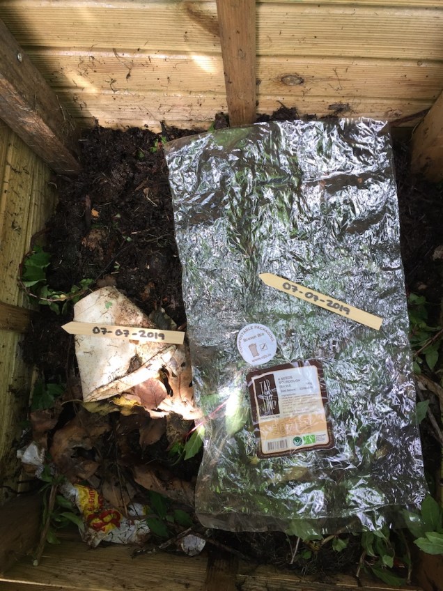 Having returned all the compost to the heap I then added two further distinct items, both of which claim to be compostable.