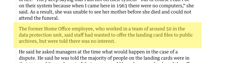 One of the most useful resources in my research into the lives of all the men who took part on the Dams Raid (now published as The Complete Dambusters, plug, plug) have been genealogical records. Firms like Ancestry have done us all a great service in digitising resources such as US landing cards, and I simply don’t believe that they would not have offered to take the UK landing cards off the Home Office’s hands. And according to this BBC article, the National Archives already holds the passenger list from the Empire Windrush itself so it too should have been consulted.
