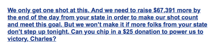 Three hours and six minutes later, at 02.04 on 31 October, Joe himself wanted my first donation to raise another $168,478 in my state before the midnight deadline.